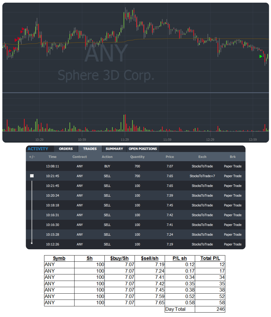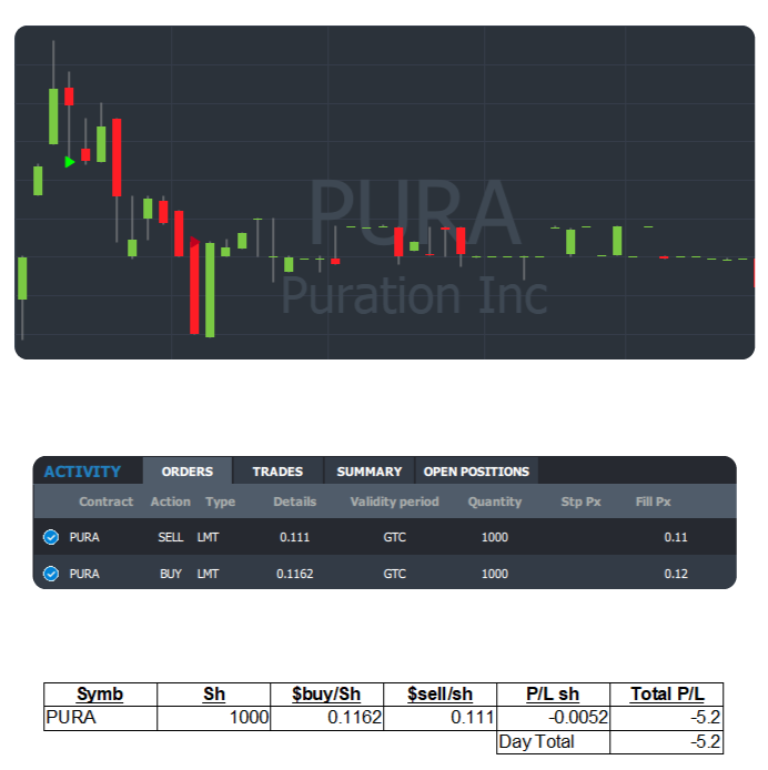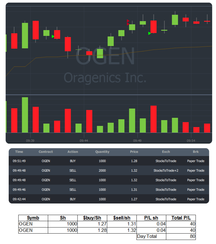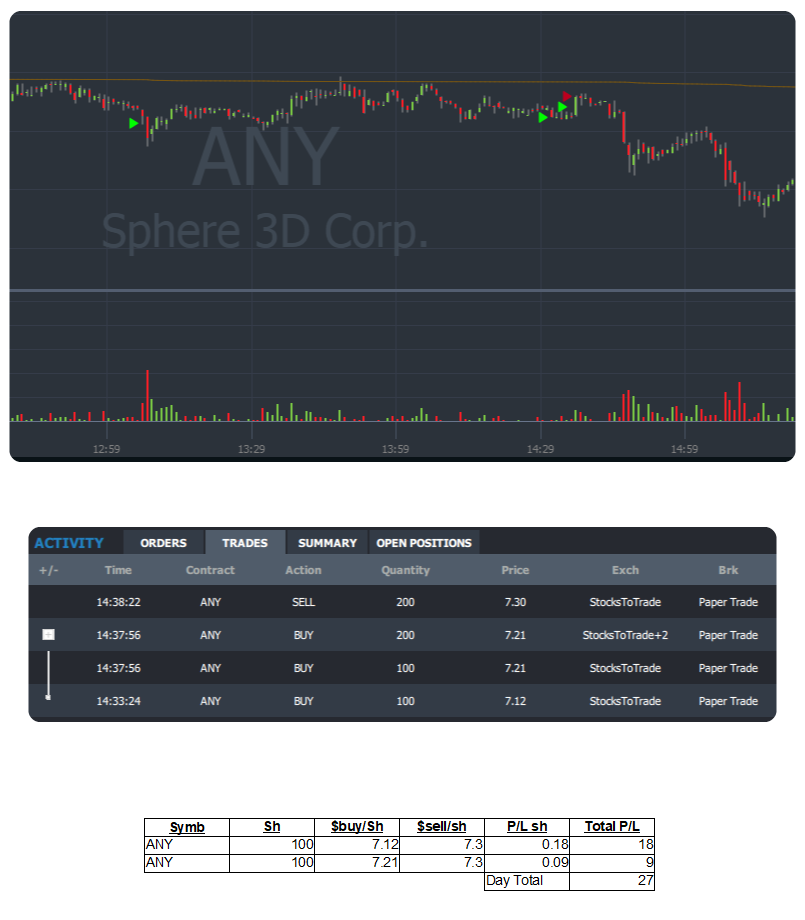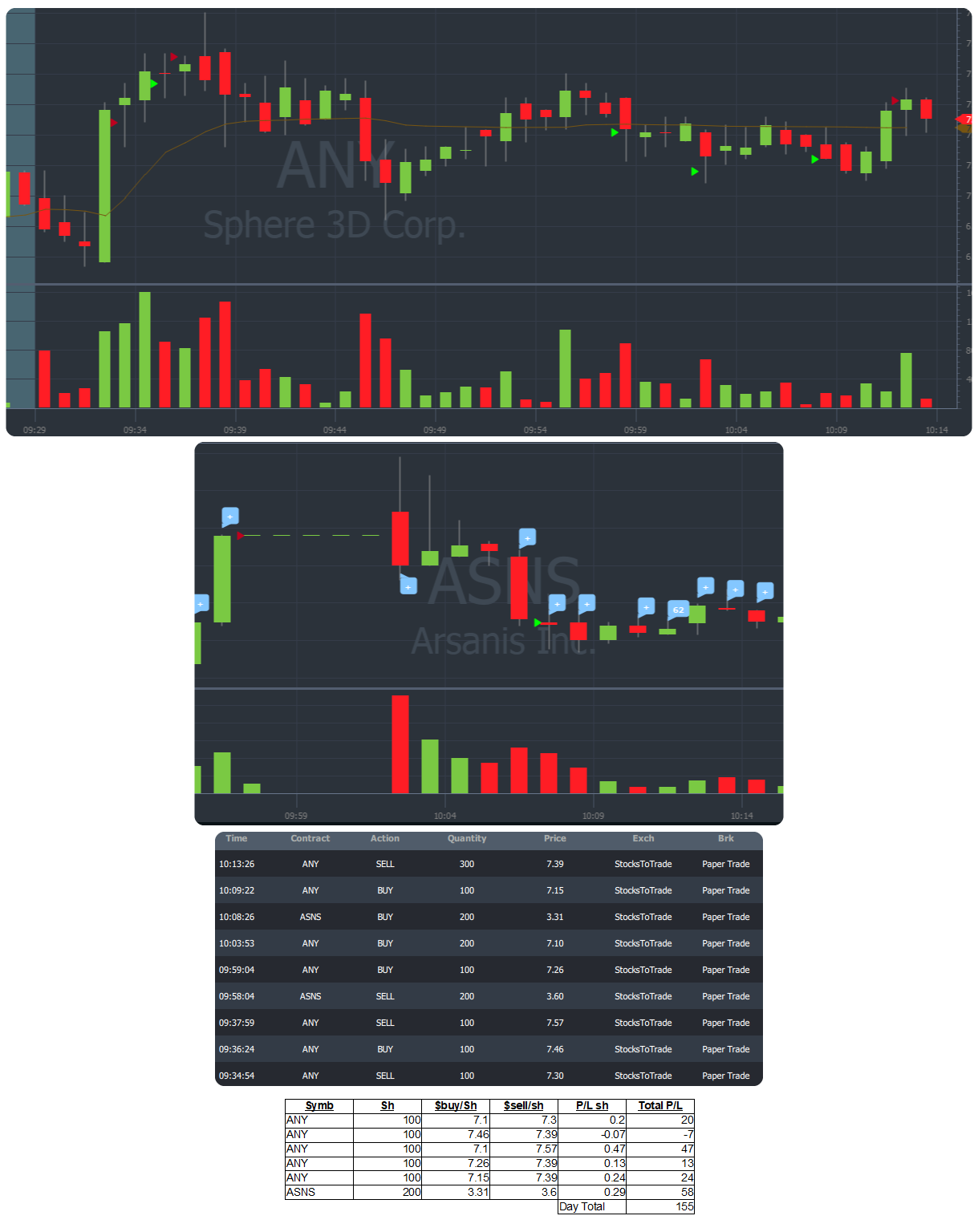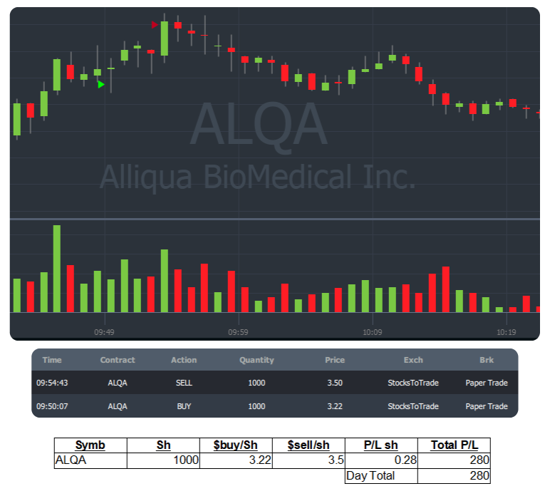 I am happy with my results this week, In thinking back over the paper trades this week as long as I stuck with my plans and stocks I was watching they turned out well. Monday I made a mistake and followed an alert, but cut the loss quickly and realized I should not have played it. Key stocks I watched and played paper with this week were $ANY, $ASNS, $ALQA, $OGEN, and $NBEV. $PURA was my Monday play they was following an alert while it had some movement I wasn’t watching for right entry and exits and simply made a mistake following an alert. Following that one I made sure and followed my own stocks and made my own plans the rest of the week. All in all happy with how it is progressing and really considering going real next week.