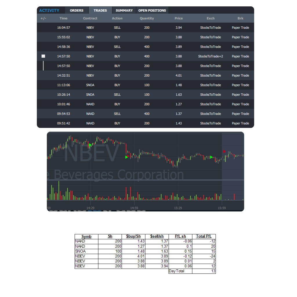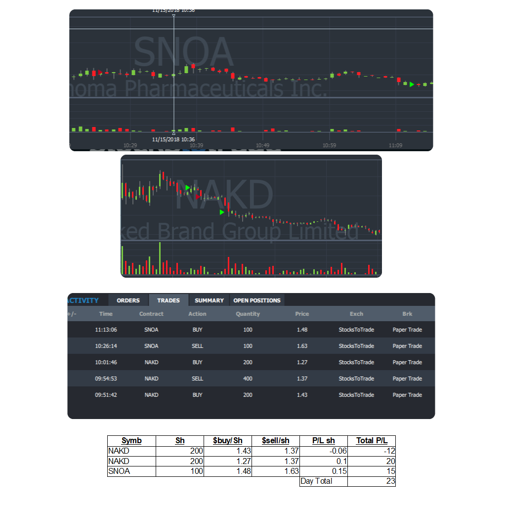 Had a couple trades today, started off buying NAKD and quickly realized I should have sold so I did at double my position giving me 200 short and had another descent fall to make back loss and a bit of profit.
